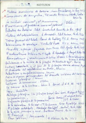 Las últimas 3 páginas (5 cuartillas) de la agenda empleada por Ernesto "Che" Guevara para redactar su diario en Bolivia correspondiente al año 1967, contienen la siguiente lista de libros que a continuación transcribimos. Incluímos también fotos de las cuartillas mencionadas