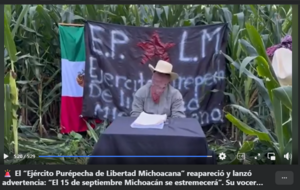 "Comandante Arango" (2025-08-21). 🚨 El “Ejército Purépecha de Libertad Michoacana” reapareció y lanzó advertencia:“El 15 de septiembre Michoacán se estremecerá”. Su vocero encapuchado, “Comandante Arango”, amenaza violencia contra los “traidores”, sin dar nombres. Dicen tener respaldo en varias regiones de #Michoacán. ¿Otra advertencia o puro show con fusiles? Tú qué opinas. Facebook. Archivado desde el original en 2025-09-16.