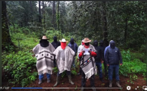 - ↑ “ “El 15 de septiembre Michoacán se estremecerá. Ni quisiéramos violencia, pero ante la complicidad y falta de acciones para restablecer la paz, la única opción que nos queda es la sangre del traidor para ofrecerla a nuestros dioses purepechas” aseguró el llamado Comandante Arango, luciendo encapuchado sentado en una mesa, con una manta que luce el nombre del colectivo y una estrella roja similar a la usada por zapatistas, y exhibiendo un archivo que dice, entregó al gobierno de Estados Unidos para denunciar corrupciones y complicidades, así como a los orquestadores de extorsiones, violencia e inseguridad en distintas zonas michoacanas. El sujeto asevera contar con apoyo en diversas regiones y comunidades de la entidad tales como Tierra Caliente, la Cañada de los 11 Pueblos, la Ciénega de Zacapu, la Región Lacustre, Uruapan Tancítaro, Los Reyes, Carapan, Cherán, Cheranastico, Tocumbo Patamban, Tingüindin, Cotija, Peribán, entre otras.”